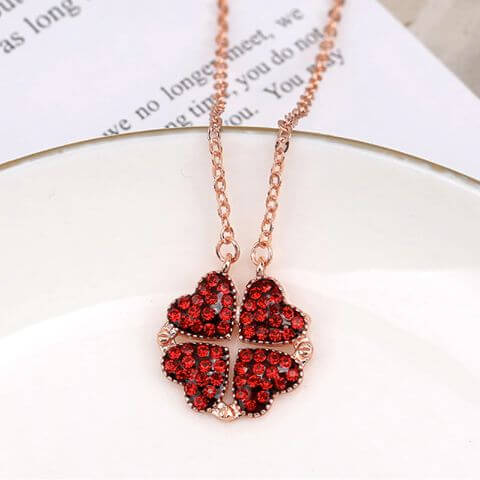 Suderinkite Keturlapio dobilo / širdučių papuošalą „2-in-1“ su mūsų unikalia rožės formos dėžute (kiekis ribotas)!Rožės formos dėžutėje kaklo papuošalas bus pateiktas iki šiol nematytu būdu ir tai garantuotaipadarysjai įspūdį. 🌹