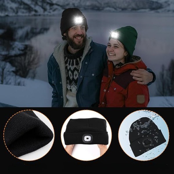 Išlikite šilti ir matomi šaltomis ir tamsiomis naktimis su mūsų naujovišku LEDBEANIE. Be vargo ir saaugiai apšvieskite savo vakarinius pasivaikščiojimus ar veiklą lauke.