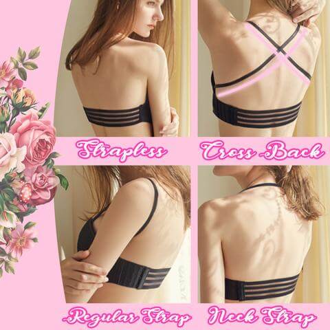 - Keturi dėvėjimo būdai: Ši liemenėlė yra labai universali. Ją galite nešioti be petnešėlių, su juostele per kaklą, su įprastai užsegtomis petnešėlėmis, sukryžiuoto stiliaus petnešėlėmis ar kitokio stiliaus. Ji suteikia skirtingus pojūčius skirtingiems jūsų drabužiams .