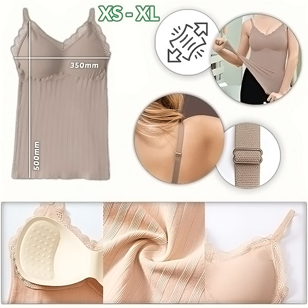 Sukurta siekiant užtikrinti maksimalų komfortą visos kasdienės veiklos metu. Nesvarbu, ar esate darbe, apsipirkinėjate, ar mėgaujatės socialiniais susitikimais, šie marškinėliai suteikia atramą ir prilaiko krūtinę kaip liemenėlė.