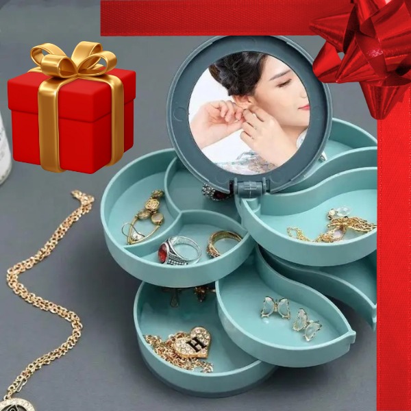 Pasukite dėžutę 360° kampu, kad akimirksniu rastumėte reikiamus papuošalus – nebereikės raustis krūvose ar stalčiuose.