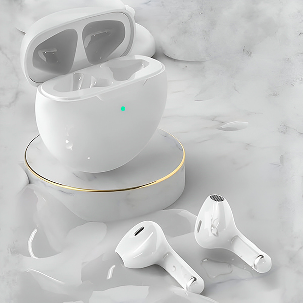 Pakuotėje: 2 ausinės, įkrovimo dėklas, USB kabelis