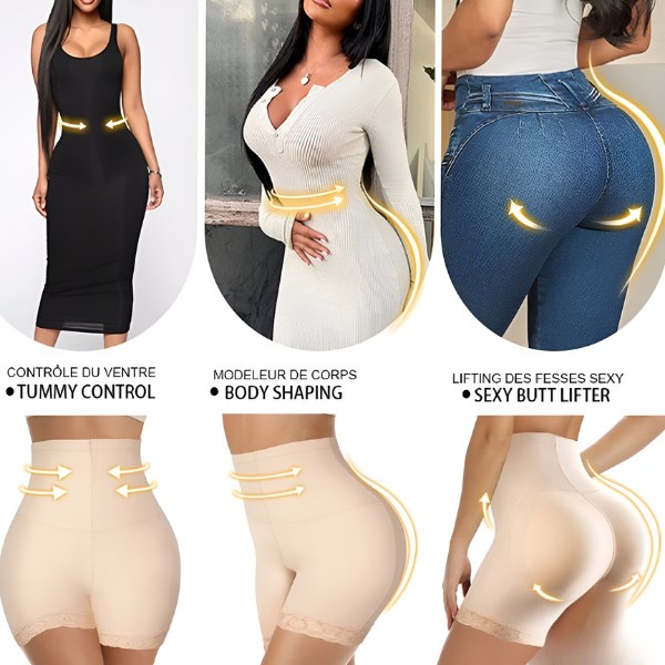 Ypatybės: Aukštas liemuo, pilvuko kontrolė, klubų pakėlimas, juosmens ploninimas